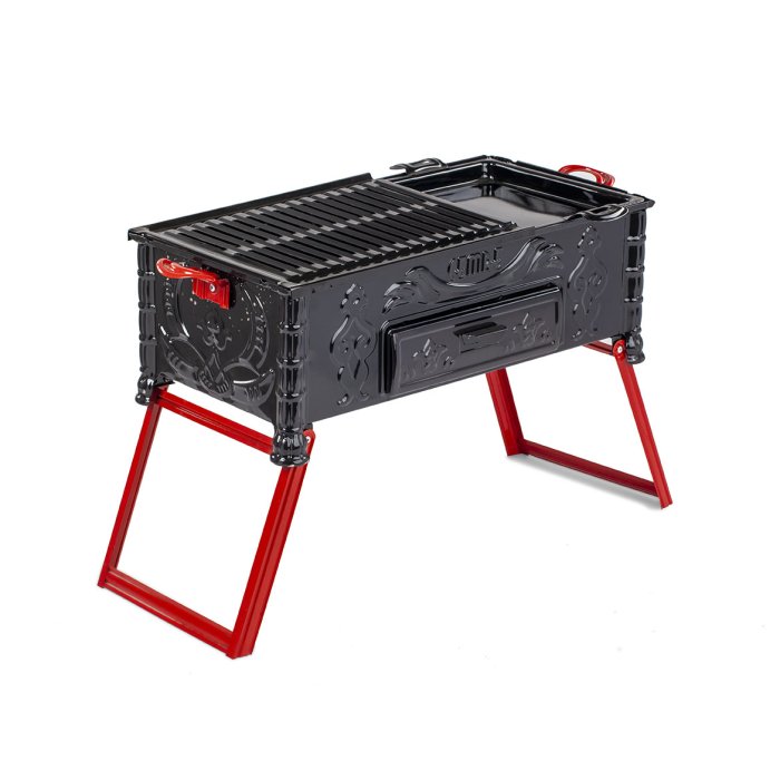 Cemre C-16 Semaverli Ayaklı Kavurma Saclı Yağdanlıklı Mangal 33*70cm