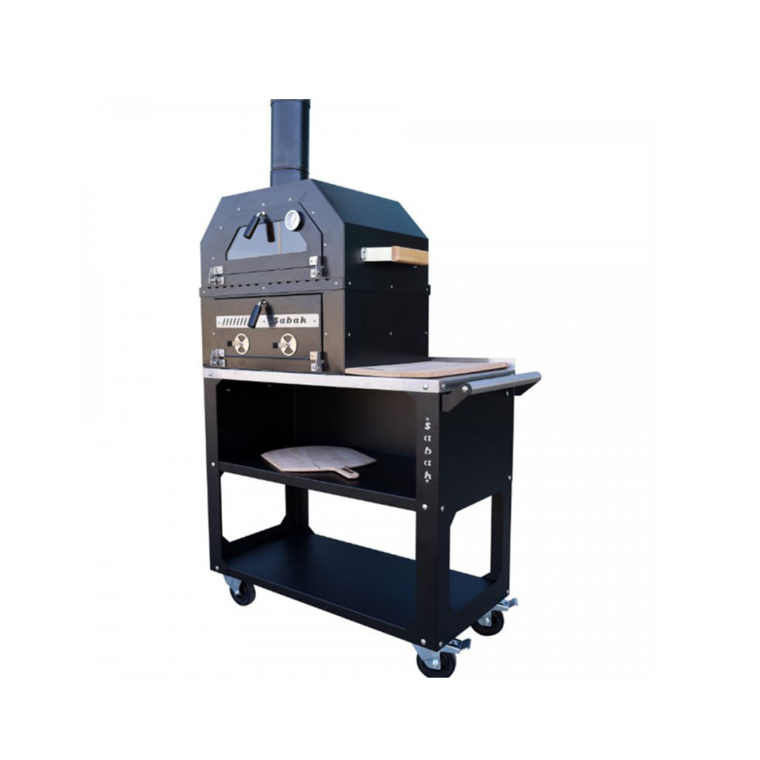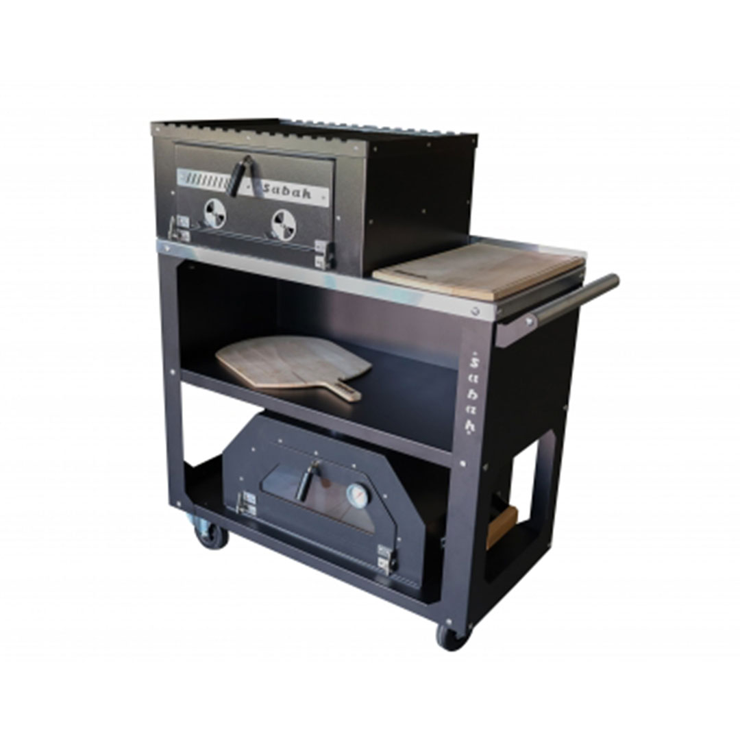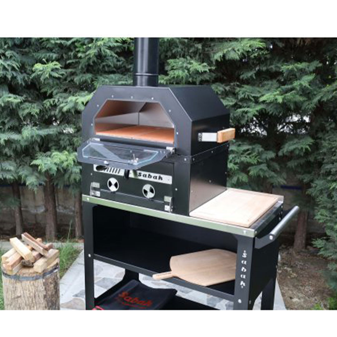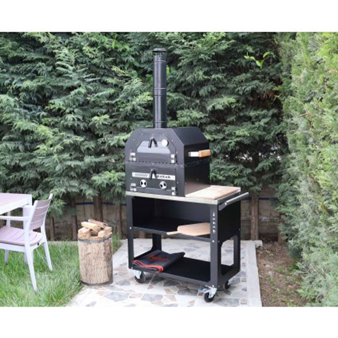 Sabah Tekerlekli Kömürlü Bahçe Fırını Mangal Barbekü Seti (Kesme tahtası + Pizza Küreği + Kılıf Hediyeli)